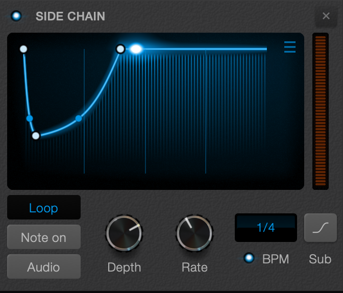 You can route audio to the effect, such as a kick drum. The effect will be triggered based on a threshold slider - Depth knob controls the y value of the bottom handle. Because it is a knob, you could automate the depth by dragging a mod source to it