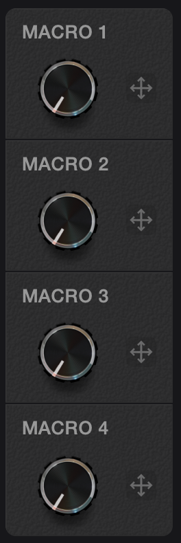For instance, you could link Macro 1 to the filter cutoff and the reverb mix at the same time. Adjusting the Macro knob would then simultaneously increase the filter cutoff and reverb mix - meaning that at the minimum position, the sound was dull and dry, and at the maximum position it was bright and wet.
