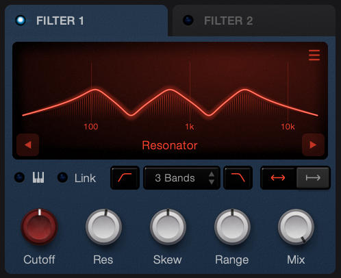 Links the cutoff of filter 1 and filter 2. - Resonance